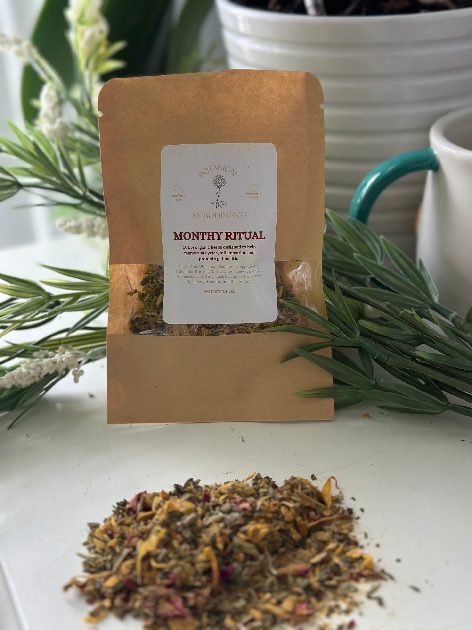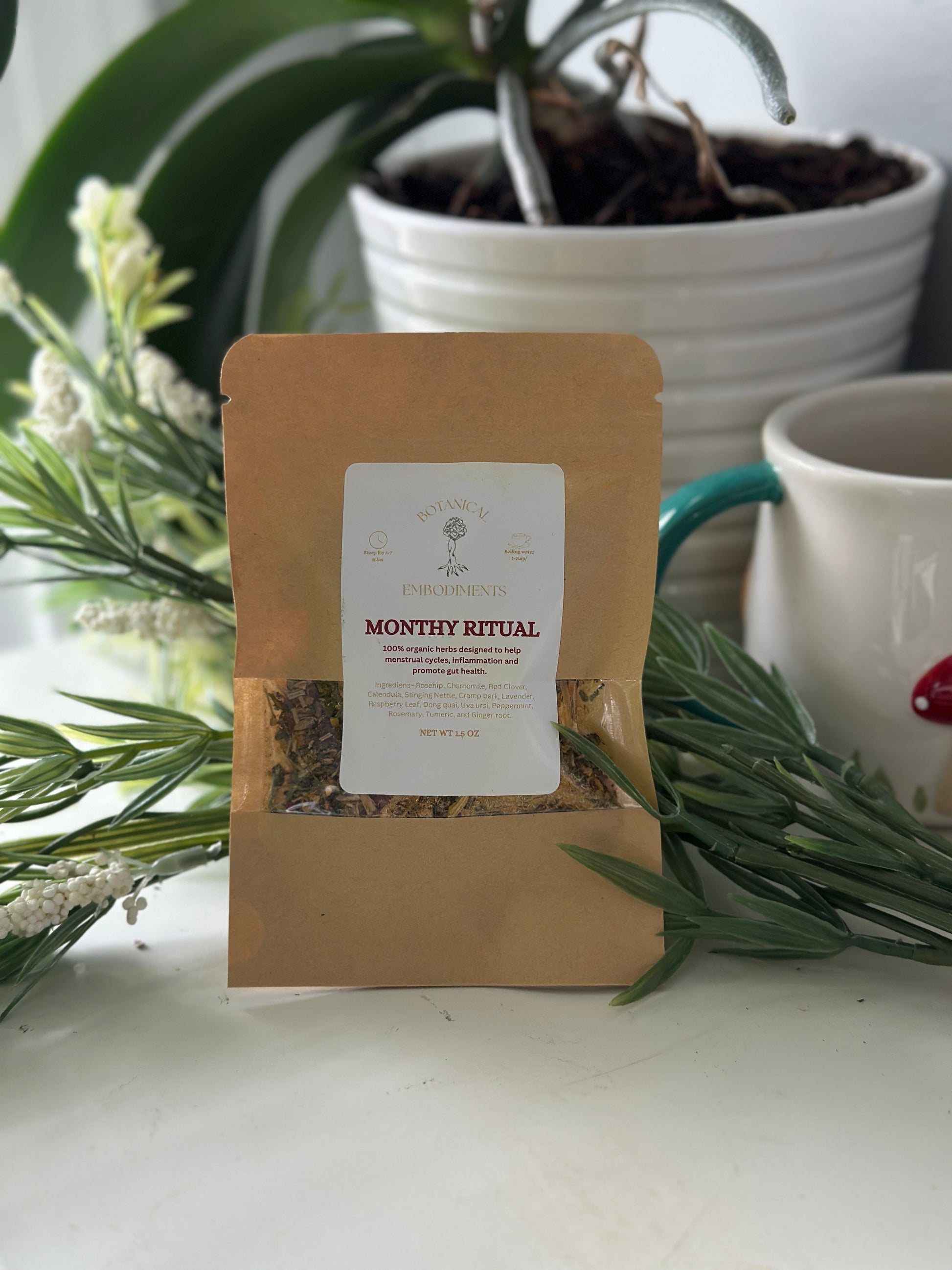 This carefully selected soothing blend of herbs thoughtfully crafted for women to support and nourish the body during their menstrual cycle. Combining 100% organic botanicals, this comforting infusion is designed to ease cramps, reduce bloating, and promote a sense of calm and balance. Whether you're starting your day or winding down, Monthly Ritual is your gentle companion for turning period care into a moment of self-love and ritual.Β Caffeine-free and intentionally blended for daily wellness, and women<3.Β